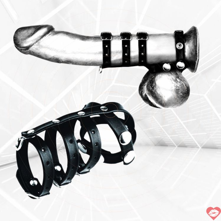 Thiết kế: 3 đai siết chặt dương vật kèm phân cách tinh hoàn, vòng lặp dưới lý tưởng cho treo phụ kiện BDSM hoặc dây dắt.