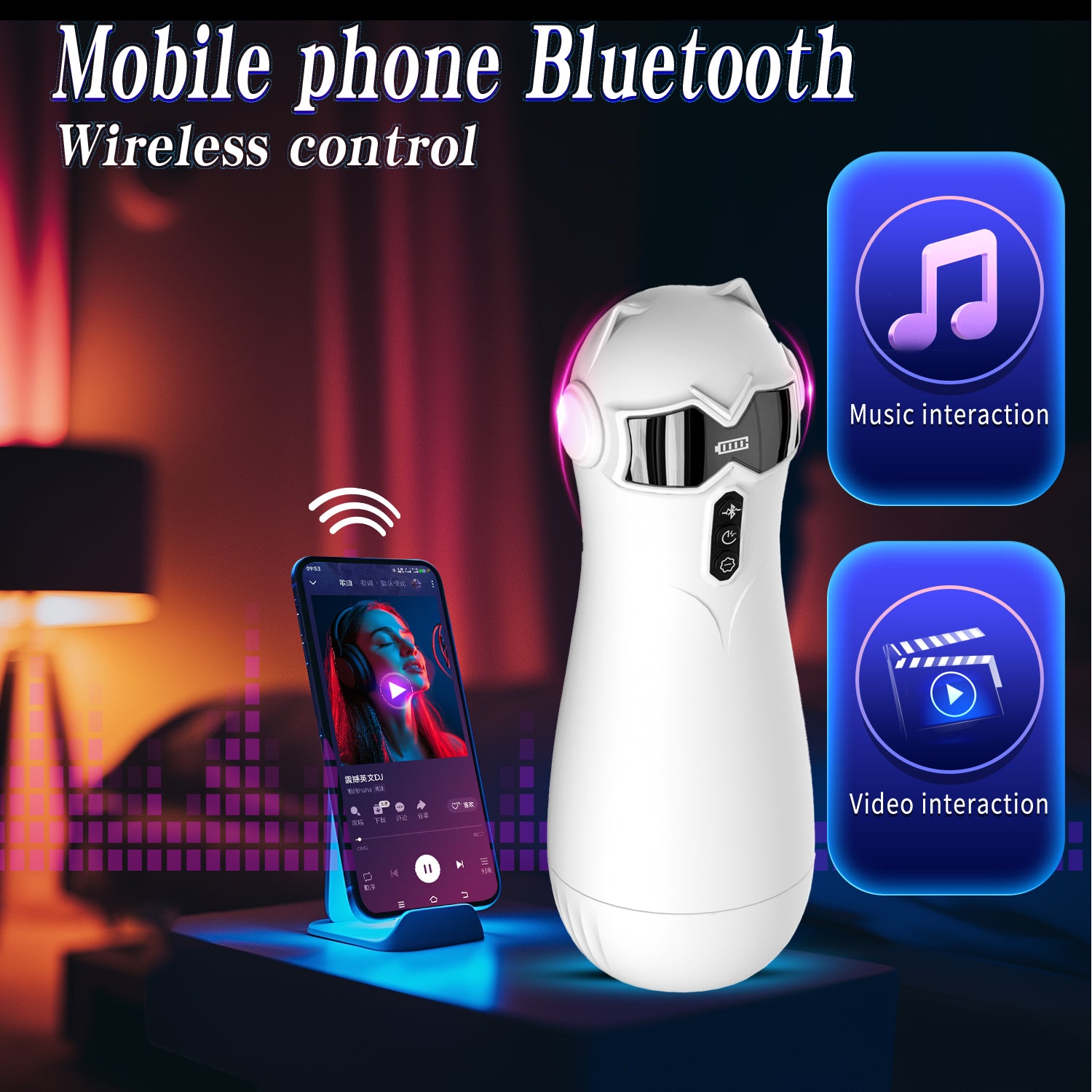 Điều khiển Bluetooth kết nối với điện thoại, cho phép kiểm soát từ xa và tương tác video control để góc nhìn tối ưu.
