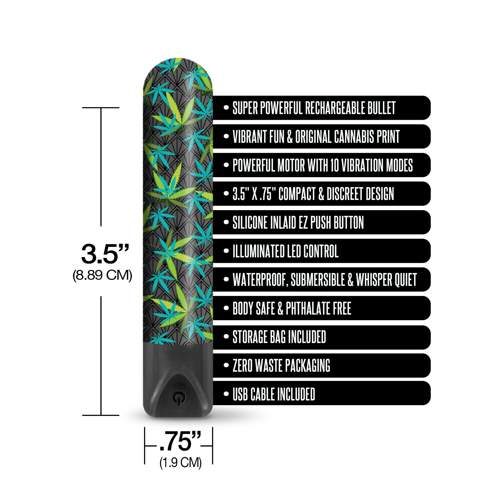 Đạn rung sạc nhỏ Buzzed Cannabis Pocket – Siêu dễ thương, kích thích đỉnh cao! 🌿✨