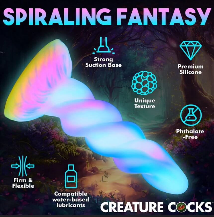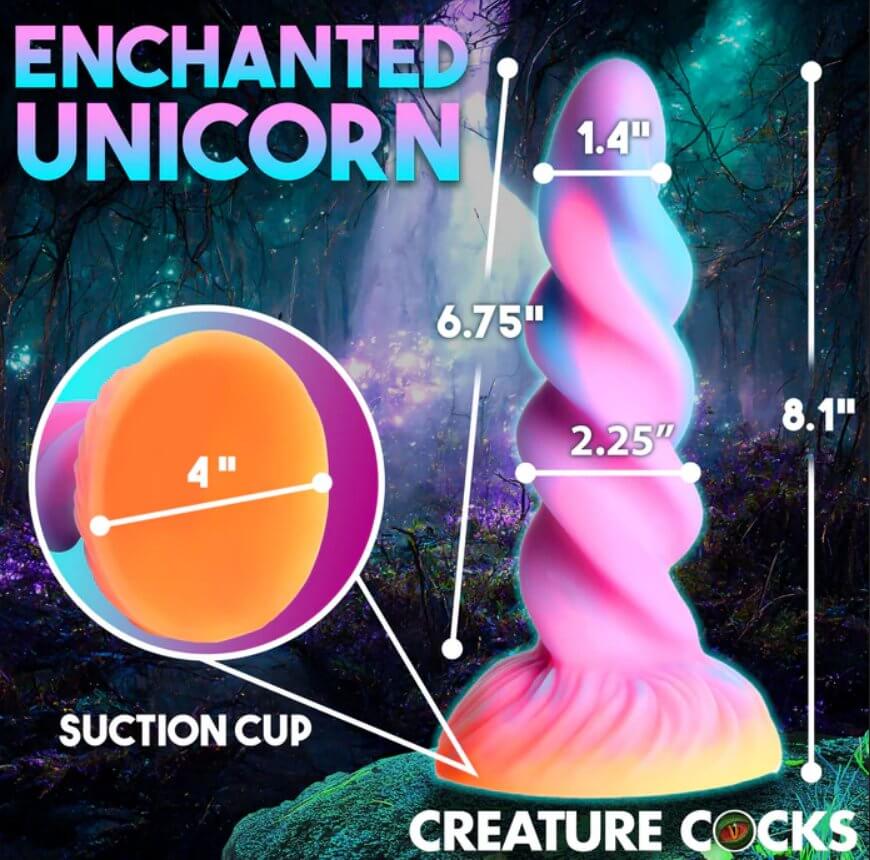 Creature Cocks Moon Rider Unicorn Dildo chính là món đồ chơi tình dục fantasy đầy mê hoặc, lấy cảm hứng từ hình dáng sừng kỳ lân xoắn ốc huyền bí. Thiết kế độc đáo này mang đến kích thích mới lạ, đánh thức trí tưởng tượng gợi cảm của bạn. Khi tắt đèn, lớp bột glow-in-the-dark phát sáng lung linh, biến mọi khoảnh khắc thành hành trình kỳ ảo đầy hứng khởi! 🌟