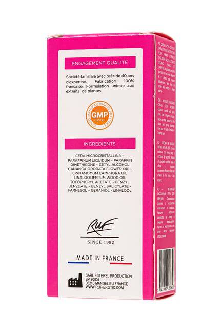 Thành phần tự nhiên đỉnh cao như sáp microcrystalline, paraffin lỏng, dimethicone, cetyl alcohol, tinh dầu ylang-ylang (Cananga odorata), dầu gỗ camphor, dầu linalool, tocopheryl acetate, benzyl benzoate cùng các dưỡng chất an toàn khác. Không hóa chất độc hại, kem kích thích phụ nữ này chính là lựa chọn lý tưởng cho sức khỏe và khoái cảm. 🌿