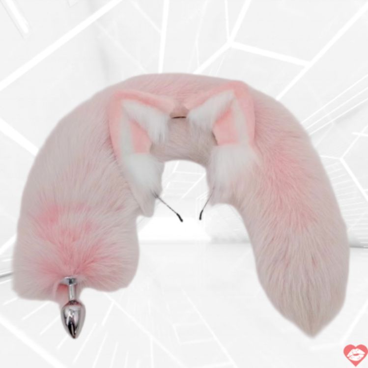 Chất liệu: nút bằng thép không gỉ đánh bóng; lông đuôi và tai làm từ lông cáo thật 100%; màu sắc đuôi hồng phấn với điểm nhấn trắng.