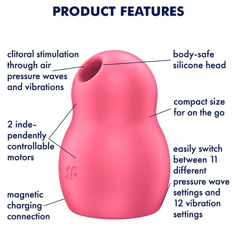 Satisfyer Pro To Go 1 sở hữu 11 mức sóng áp lực mạnh mẽ kết hợp 12 chế độ rung phong phú. Hai động cơ độc lập cho phép tùy chỉnh linh hoạt theo tâm trạng, tạo khoái cảm cá nhân hóa đỉnh cao. Đế phẳng chắc chắn giúp đặt đứng dễ dàng, tăng tính kín đáo. 🌟