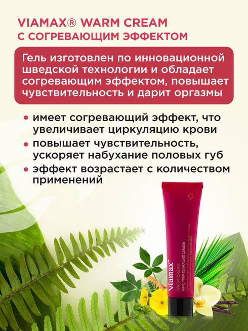Kem nóng Viamax Warm hoạt động bằng cách thúc đẩy tuần hoàn máu, làm vùng kín sưng nhẹ và nhạy cảm hơn bao giờ hết. Kết cấu mịn màng thẩm thấu tức thì, tạo ấm áp kích thích ngay lập tức. Phù hợp quan hệ tình dục hay tự khám phá, mang cực khoái mạnh mẽ, kéo dài đầy phấn khích.